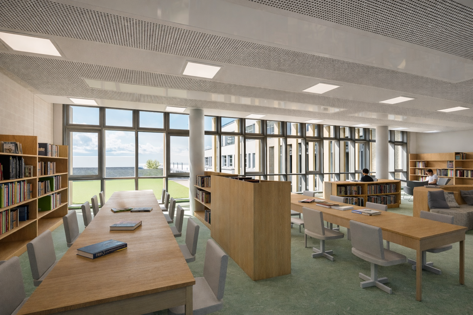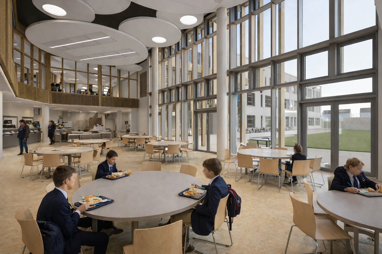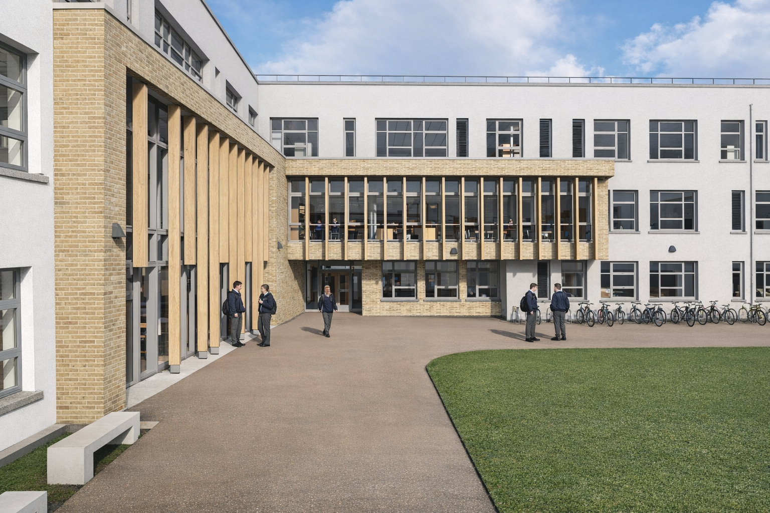 Universal Design principles are embedded throughout, including integrated Changing Places provision and step-free access across the campus. The landscape strategy restructures arrival, parking and set-down arrangements to prioritise pedestrian safety. Sustainable drainage, rooftop plant coordination, bat mitigation and high-performance fabric collectively ensure a robust, compliant and future-ready learning environment.